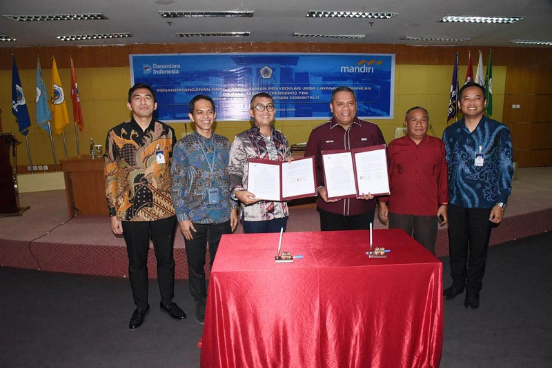Sinergi kedua institusi ini diresmikan melalui penandatanganan Nota Kesepahaman (MoU) terkait penyediaan jasa layanan perbankan yang dilakukan Rektor UNG Prof. Dr. Eduart Wolok, bersama Regional CEO PT Bank Mandiri Tbk Sulawesi dan Maluku, Nunung Andreas Wisnu, pada Rabu (2/4), bertempat di aula Rektorat UNG.
