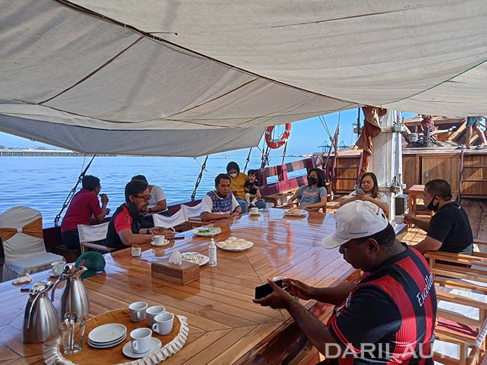 Minggu (17/10) pagi, kami kembali melakukan pelayaran di kapal Pinisi Pusaka Indonesia bersama sejumlah pengurus Asosiasi Media Siber Indonesia (AMSI) Sulawesi Selatan, Indonesia Timur dan pengurus AMSI lainnya. Verrianto Madjowa