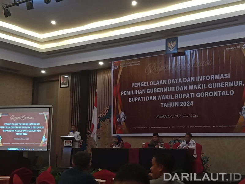 Darilaut – Komisi Pemilihan Umum (KPU) Kabupaten Gorontalo menggelar rapat evaluasi pengelolaan data dan informasi pemilihan kepala daerah dan wakil kepala daerah (pilkada) 2024, pada Senin (20/1).