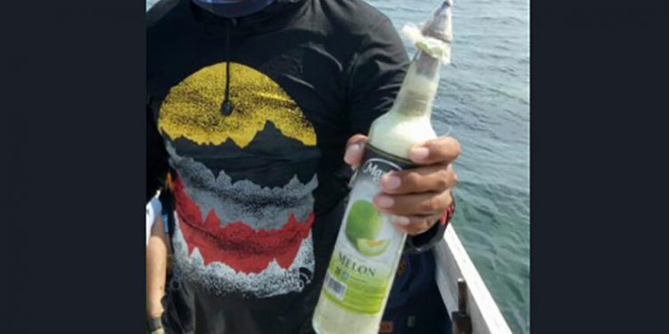 Bom ikan rakitan ini dibuang ke laut. Petugas melakukan penyelaman dan menemukan barang bukti bom ikan rakitan tersebut.