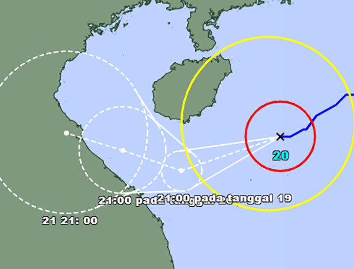 Curah hujan sedang hingga lebat dan angin kencang diperkirakan terjadi di Hainan dan wilayah pesisir Cina di Laut Cina Selatan, pada 18 – 20 Oktober, dan di Vietnam tengah mulai 20 Oktober.