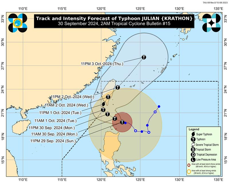 PAGASA memperkirakan topan Krathon akan mencapai kategori topan super sebelum mendarat di Taiwan selatan.