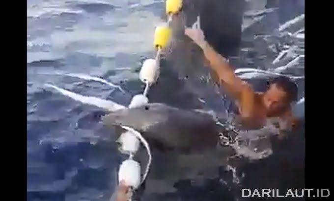 Video penyelamatan lumba-lumba ini diunggah Direktorat Pengelolaan Sumberdaya Ikan, Kementerian Kelautan dan Perikanan, Minggu (16/9). Dua nelayan berusaha mengeluarkan lumba-lumba hidung botol ini.