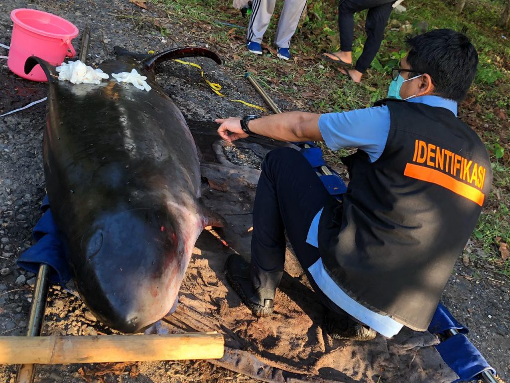 Saat masa rehabilitasi, pada pukul 16.35 WIB paus Kogia sudah dalam kondisi mati.